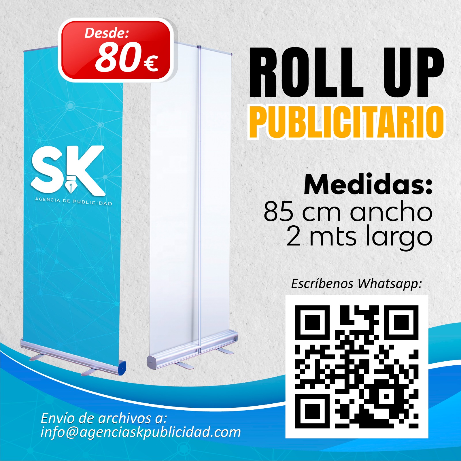 • Estructura Autónoma: Este Roll Up viene con una estructura de soporte que permite que se mantenga en posición vertical de manera autónoma. La estructura suele ser ligera y fácil de montar, lo que facilita su transporte y configuración en diferentes ubicaciones.